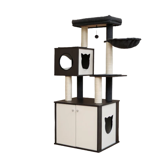Arbre à chat 112 cm avec niche, griffoirs et plateformes – CosyTower