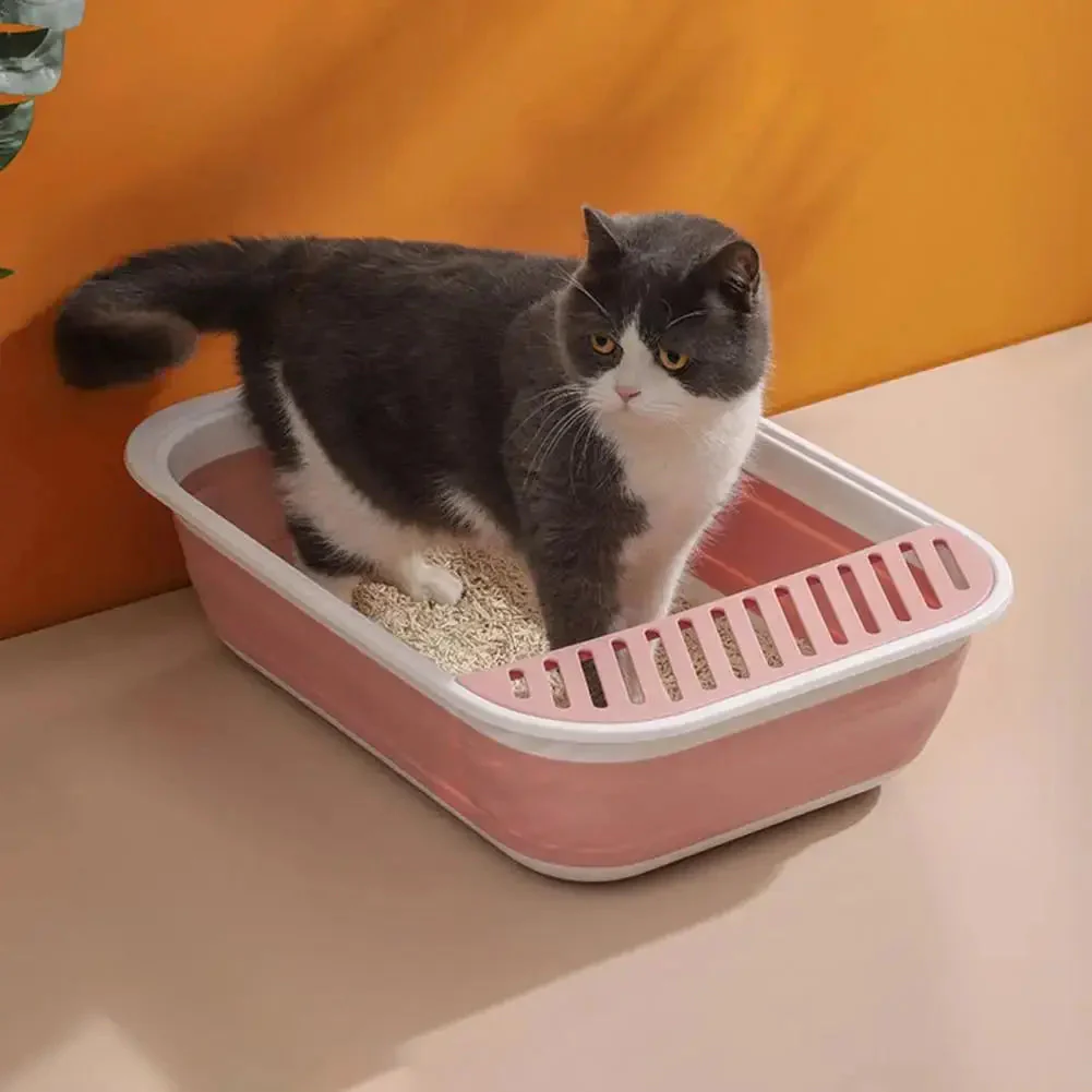 Bac à Litière Ouvert avec Grille Anti-Débordement