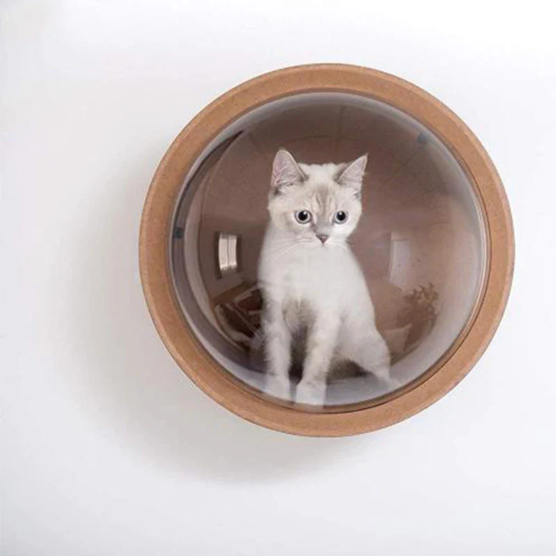 Abri mural original pour chat avec dôme transparent