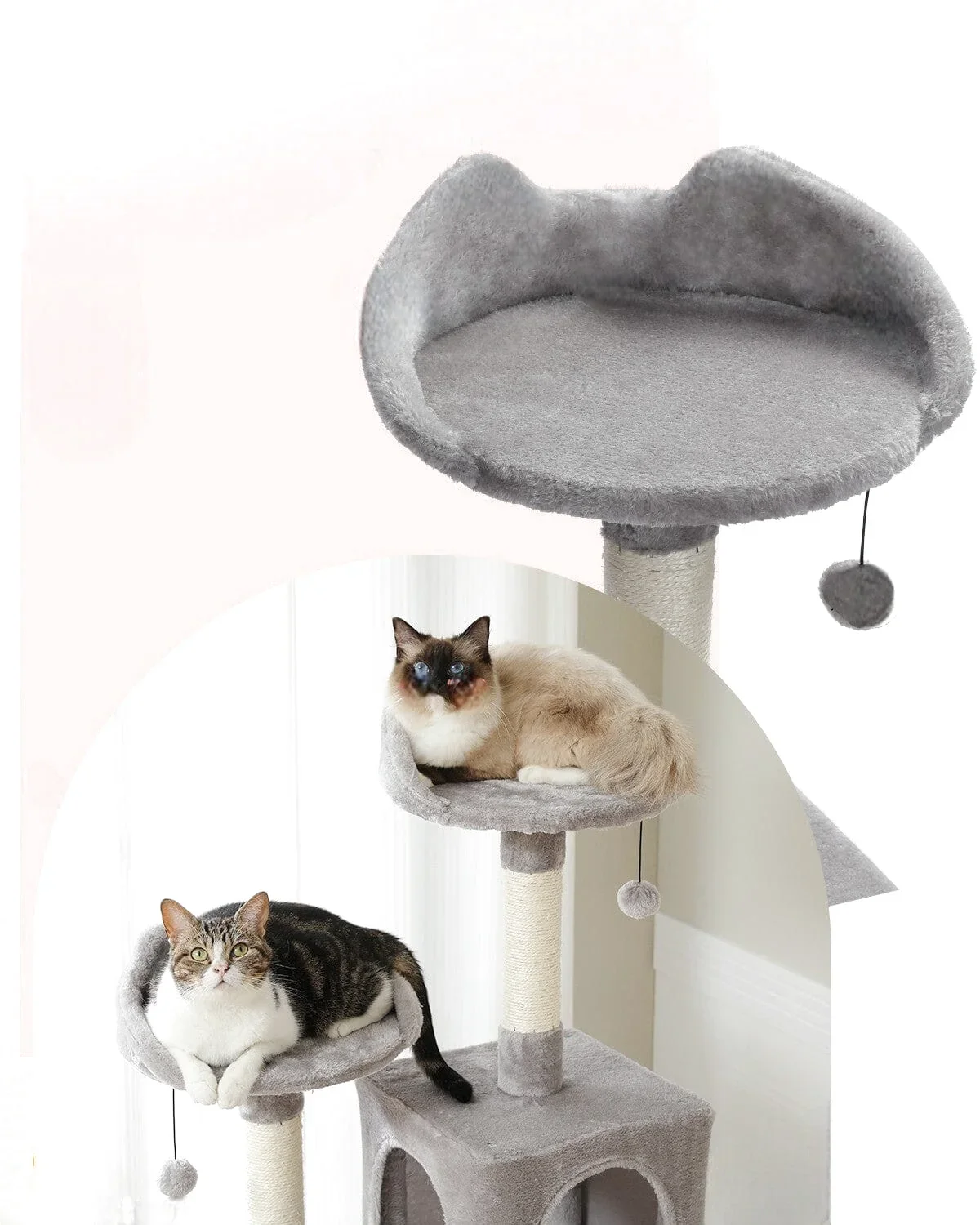 Aire de Jeu Grise Multi-Niveaux pour Chats avec Niche et Jouets Suspendus