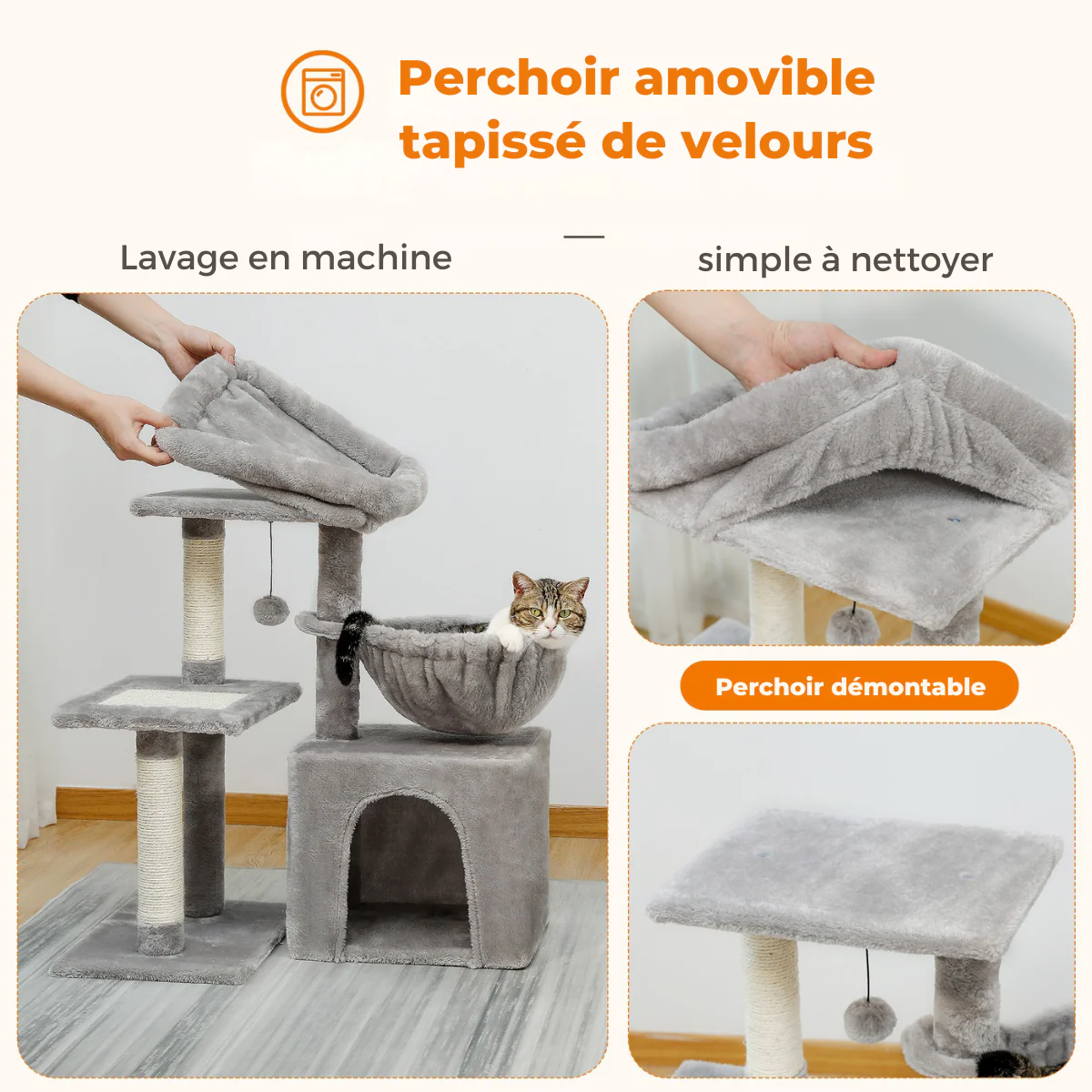 Aire de jeu multifonction pour chats avec hamac et grattoir