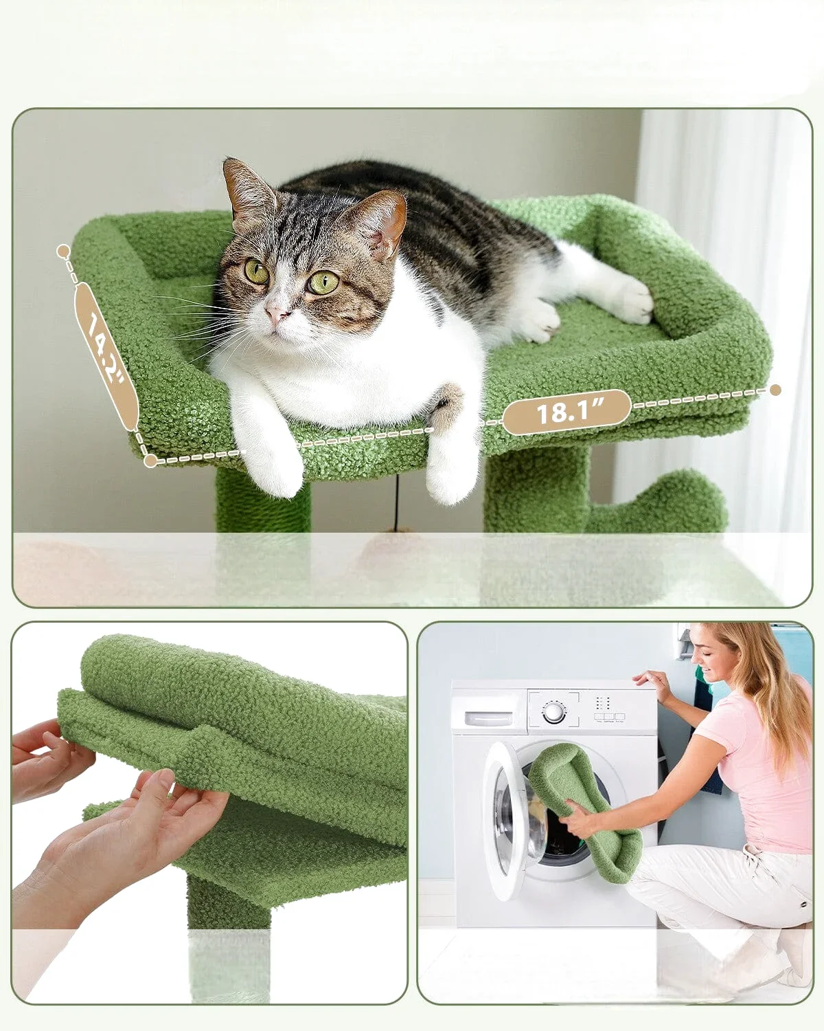 Aire de Jeu pour Chats avec Niche, Hamac et Plateformes Multiples – Vert et Beige