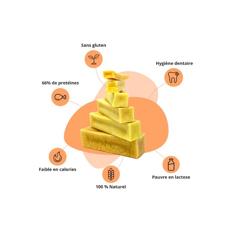 - Fabriqué selon une recette centenaire issue des hauteurs de l’Himalaya « le fromage de yak »